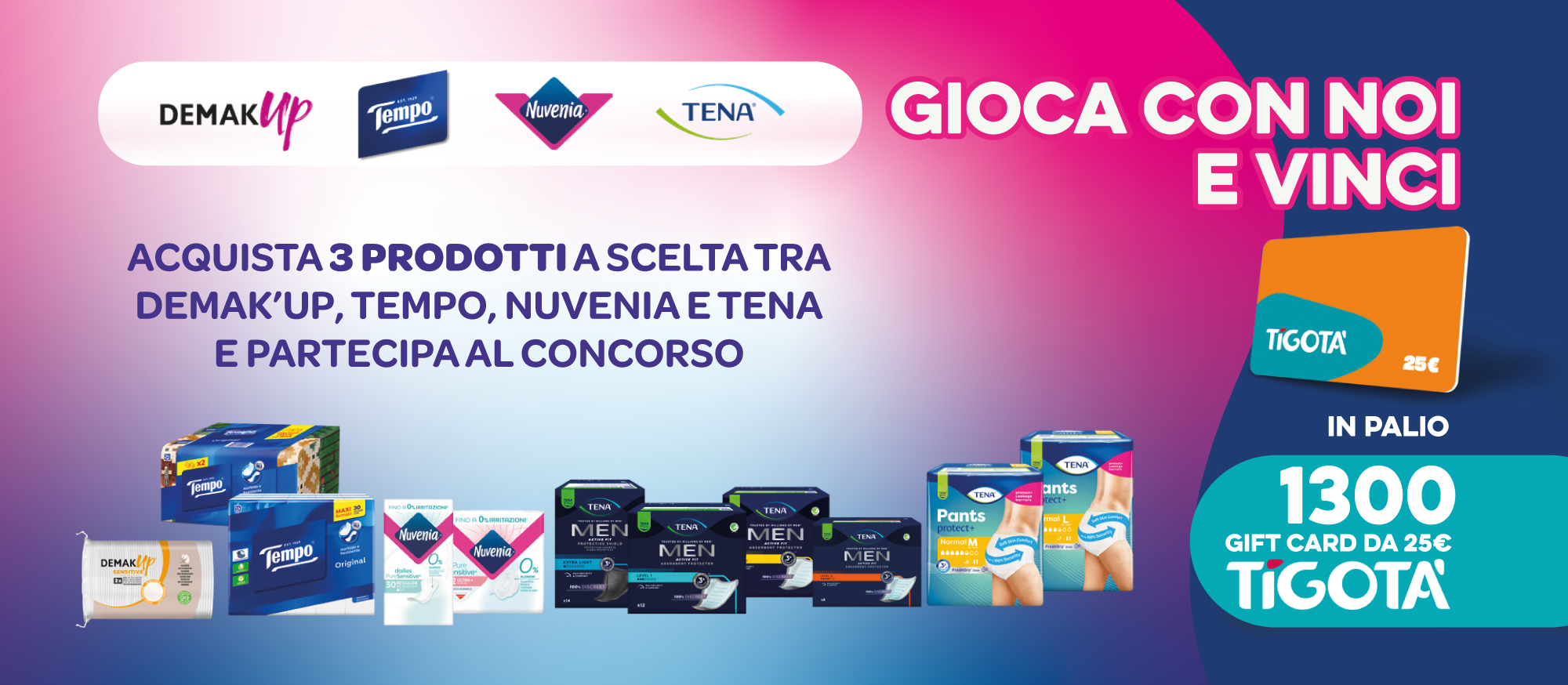 Puoi vincere in estrazione finale una delle 1.300 gift card Tigotà da 25€ in palio