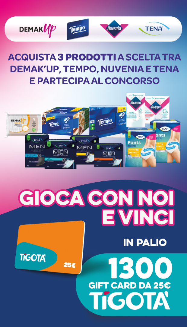 Puoi vincere in estrazione finale una delle 1.300 gift card Tigotà da 25€ in palio